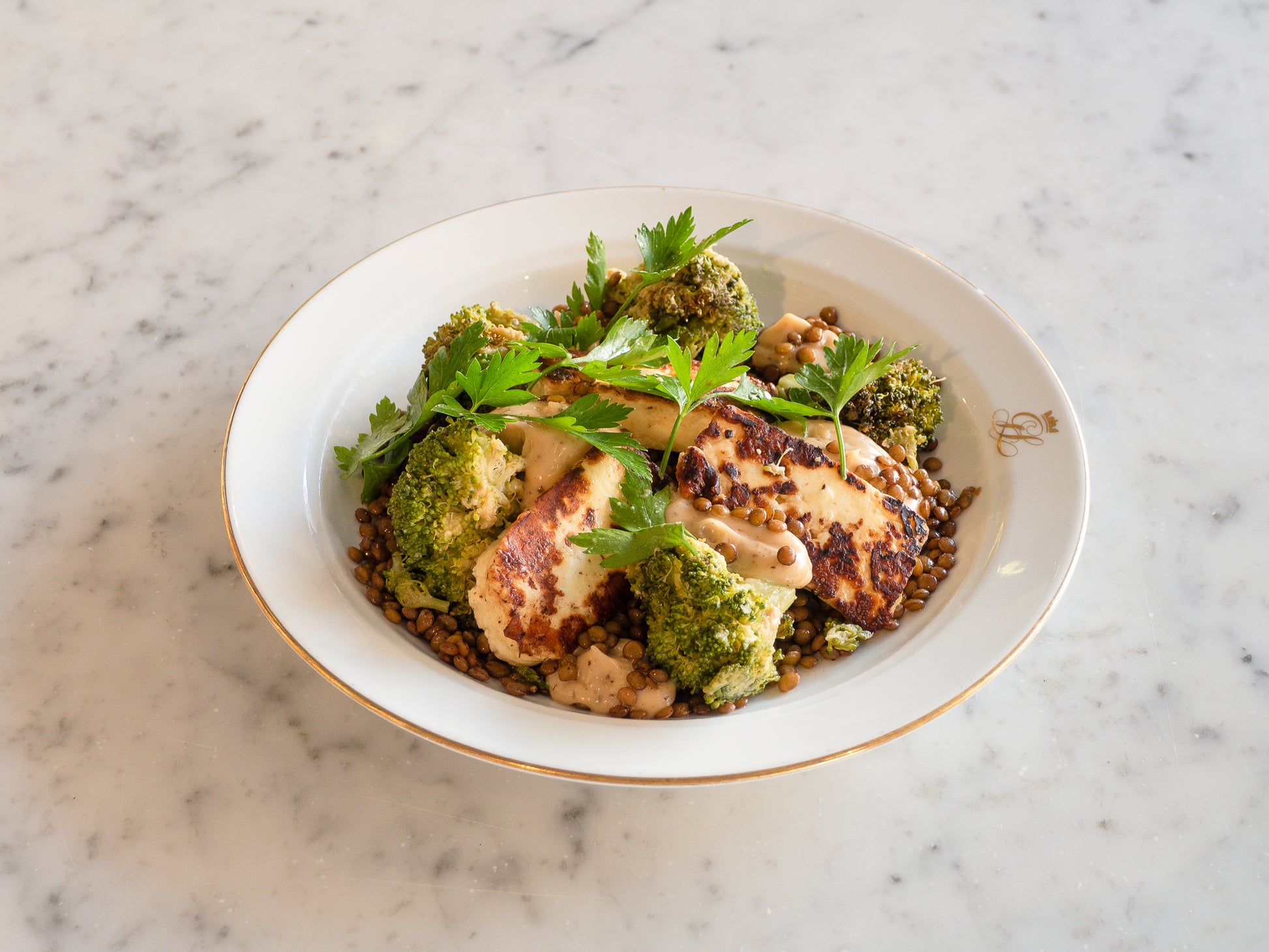 Fiskqueneller,smörfräst spenat,rostad pumpa & skaldjurssås.